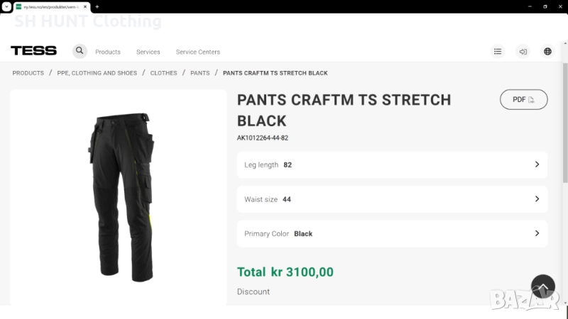 Марка: TESS AK1012264 PANTS CRAFTM TS STRETCH BLACK With Holster Pocket - изцяло еластичен работен панталон. Има джоб на коляното за наколенка , гъба.