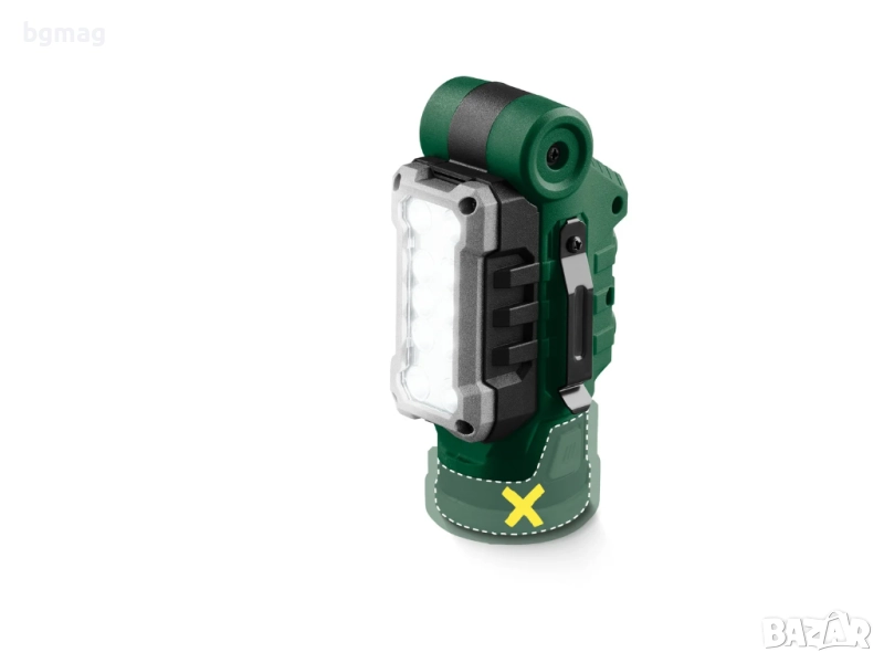 Акумулаторна LED работна лампа от серията електрически нструменти на Parkside, max 480 лумена, захранвана от 1бр. батерия-12V (батерията и зарядното не са част от комплекта), зелен цвят.
