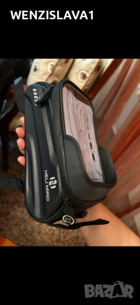 чанта за кормило на велосипед "HELI MIAO". Това е вид чанта, предназначена за закрепване към кормилото на велосипед. Чантата разполага с основно отделение за съхранение и прозрачен, чувствителен на допир джоб отпред предназначен за смартфон или GPS устройство.