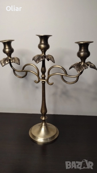 Красив свещник за 3 свещи. Изработен от месинг, с изящни детайли.