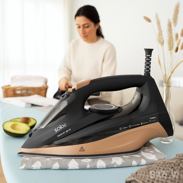 Ютия Solac Optima Shine 3000 за сухо и парно пране, керамична гладеща повърхност, 3000 W