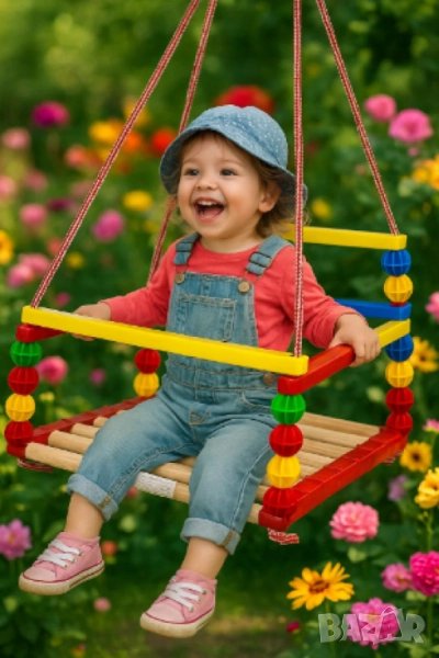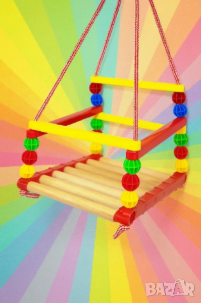Цветна класическа люлка, създадена както за игра на открито, така и за забавления на закрито. Подходяща е за монтаж в двора или за закачане на тавана у дома. Люлката съчетава традиционна дървена конструкция с ярки, весели цветове, които привличат вниманието и радват децата.