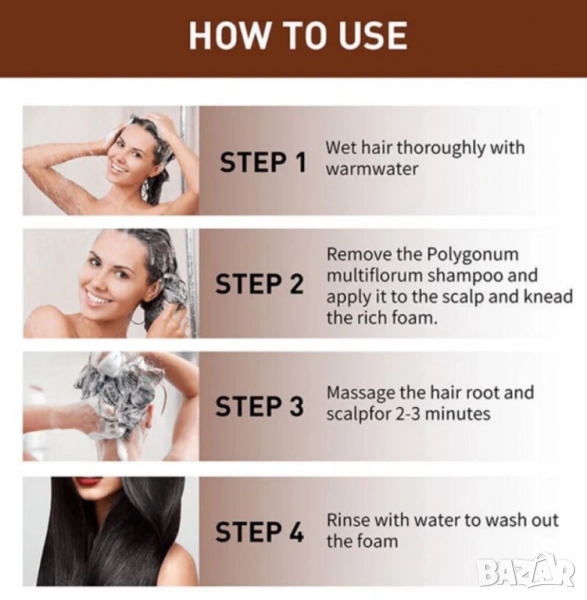 Основни съставки: Polygonum multiflorum, етерично масло, зехтин, масло от ший;