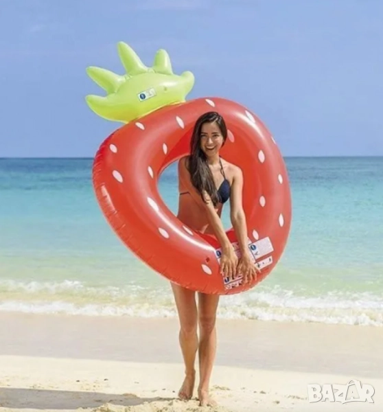 Надуваемият ринг „Ягода“ с размери 185 x 130 см е идеалният летен аксесоар за забавление и релакс във водата. Със свеж дизайн и голяма повърхност, той е подходящ както за басейн, така и за плаж. Лек, компактен и лесен за пренасяне, този надуваем аксесоар е създаден да внесе цвят и настроение във всяка водна почивка.