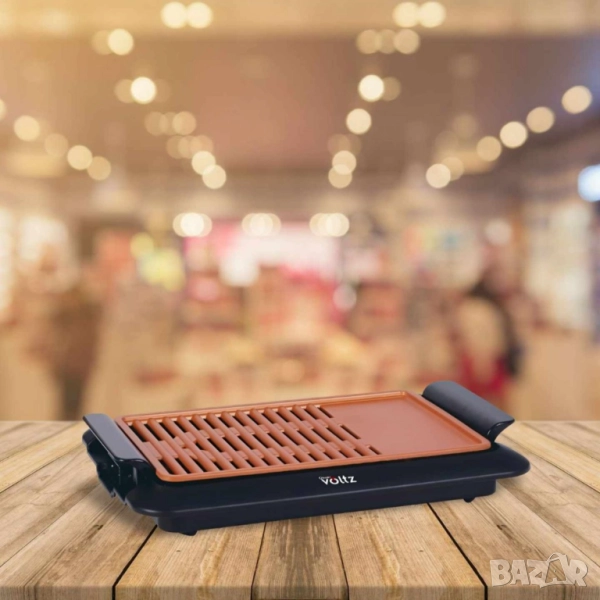 Скара Voltz, 1250W, 36x23см. плоча с 2 зони на печене, Незалепващо покритие, Черен, 2 ГОДИНИ ГАРАНЦИ