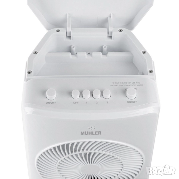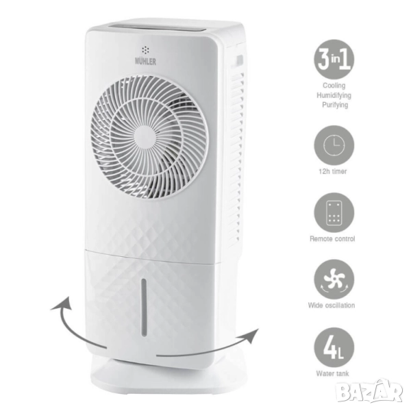 Мощност: 65W; Напрежение: 220-240V / 50-60 Hz; Резервоар за вода: 4 литра; Охлаждащи блокчета: 2 броя (включени в комплекта); Степени на работа на вентилатора: Ниска, средна, висока; Ниво на шум: до 65 dB; Размери: 235x210x565 мм; Вариант 1: Механично управление: Лесно и интуитивно управление чрез въртящи се копчета. Подходящо за потребители, които предпочитат простота и надеждност; Вариант 2: Дигитално управление: Модерно управление с LED дисплей и сензорни бутони. Възможност за прецизно настройване на функциите и таймера. Идеално за потребители, които ценят технологичните иновации и удобството.