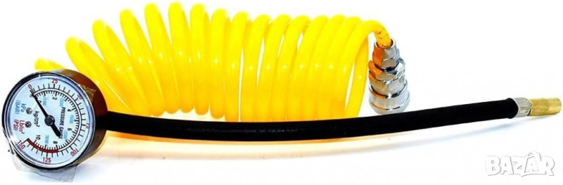 спираловиден подсилен маркуч с бърза връзка и манометър: Дължина 5 м.;