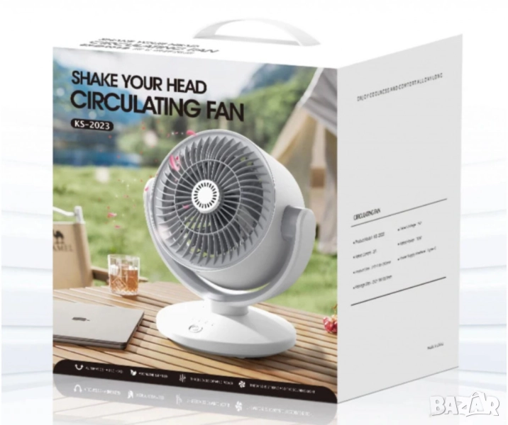 Оборудван с 3 бр. вентилаторни лопатки, изработени от ABS материал, с 3-скоростна променлива конструкция, която ви позволява да регулирате желания режим. USB портът за зареждане е съвместим с множество устройства, включително лаптопи, адаптери за мобилни телефони, мобилни захранвания и USB зарядни устройства. Вентилаторът използва енергоспестяващ мотор, ниска мощност, произвежда нисък шум по време на употреба. Главата на вентилатора може свободно да се върти нагоре и надолу с променлив наклон от 180 градуса, за лесно променяне на посоката на въздуха и бързо охлаждане на помещението.