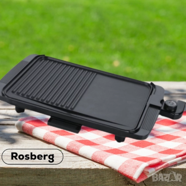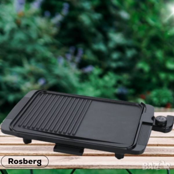 Скара Rosberg, 1500W, бр. 1 36x26см. плоча с 2 зони на печене, Незалепващо покритие, Черен, 2 ГОДИНИ