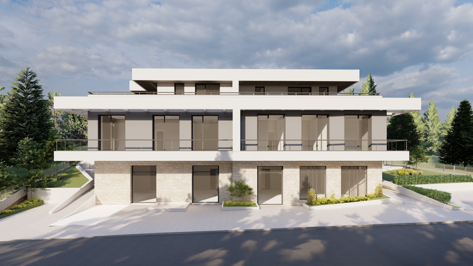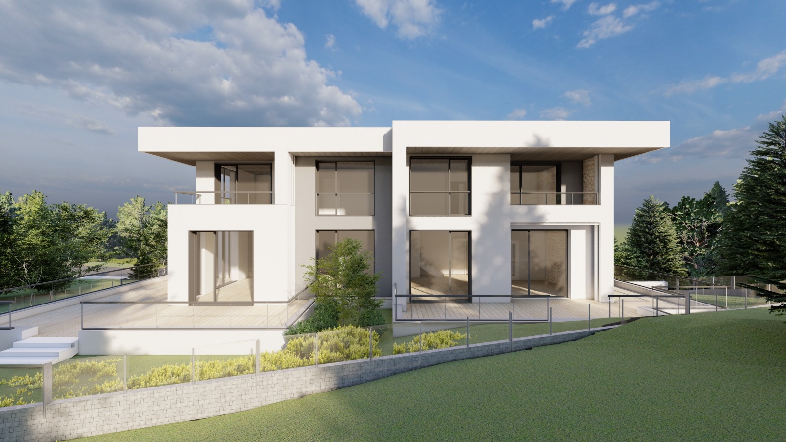 Primo+ Представя ексклузивен проект за две къщи-близнак (всяка със самостоятелен двор) и търговски център на две нива. Висок клас материали.