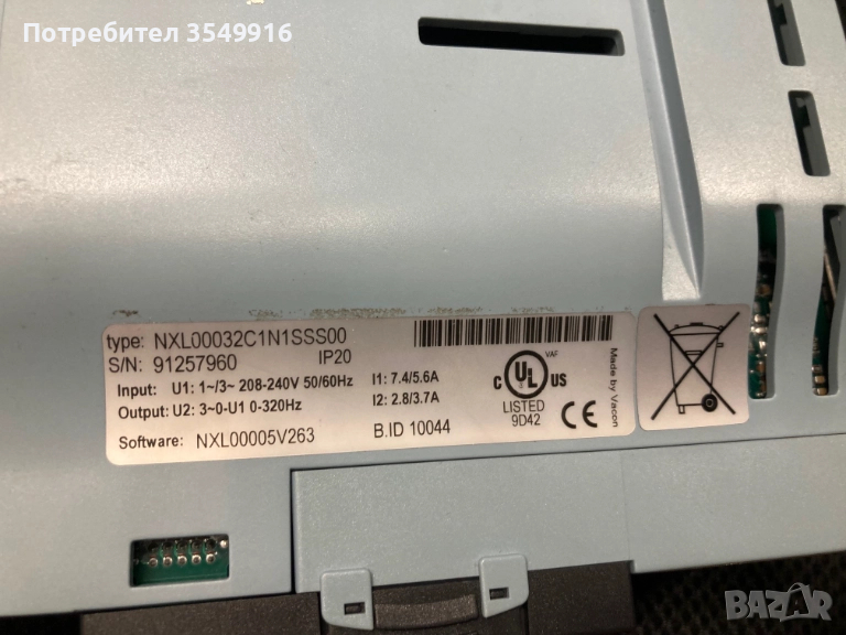 Честорен регулаторт модел NXL00032C1N1SSS00 0,55 KW Вход 1PH 220/240V +/- 10% 50/60Hz 7,4A Изход 3PH 0-240V 0/200Hz 3,7А Състояние-използвано в отлично състояние.