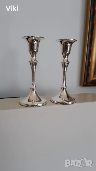2 бр посребрени свещници, имат нужда от излъскване . Сложил съм снимка как изглеждат лъснати. Перфектни за декорация и ползване