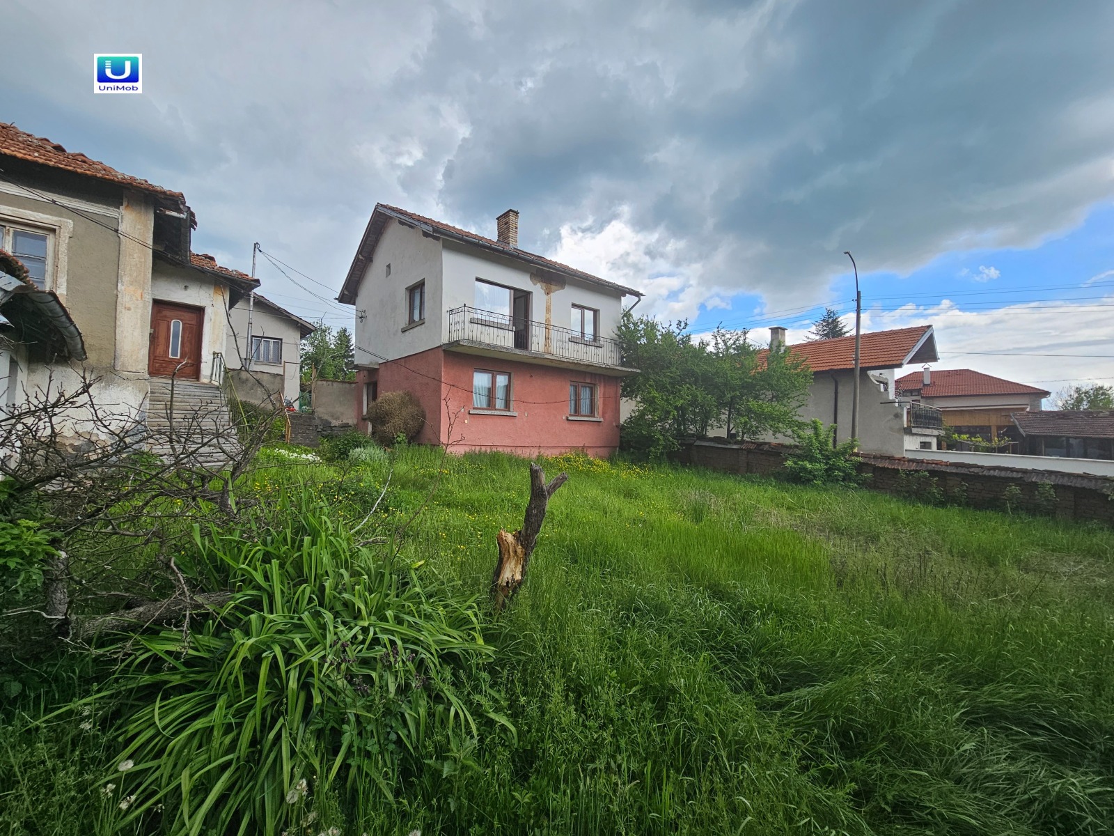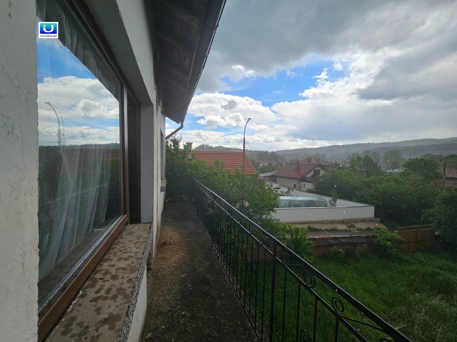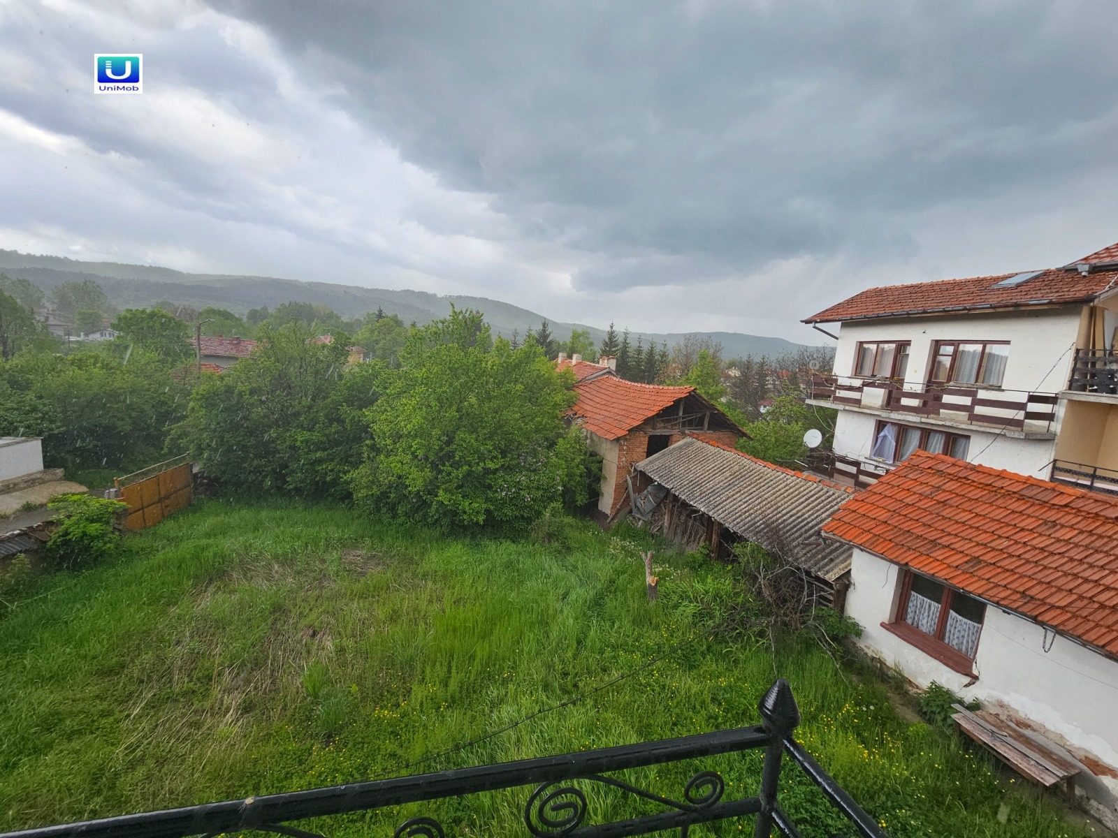 Продава се къща на два етажа с прекрасен двор в с. Горни Окол с три построени сгради и прекрасна гледка към Рила планина