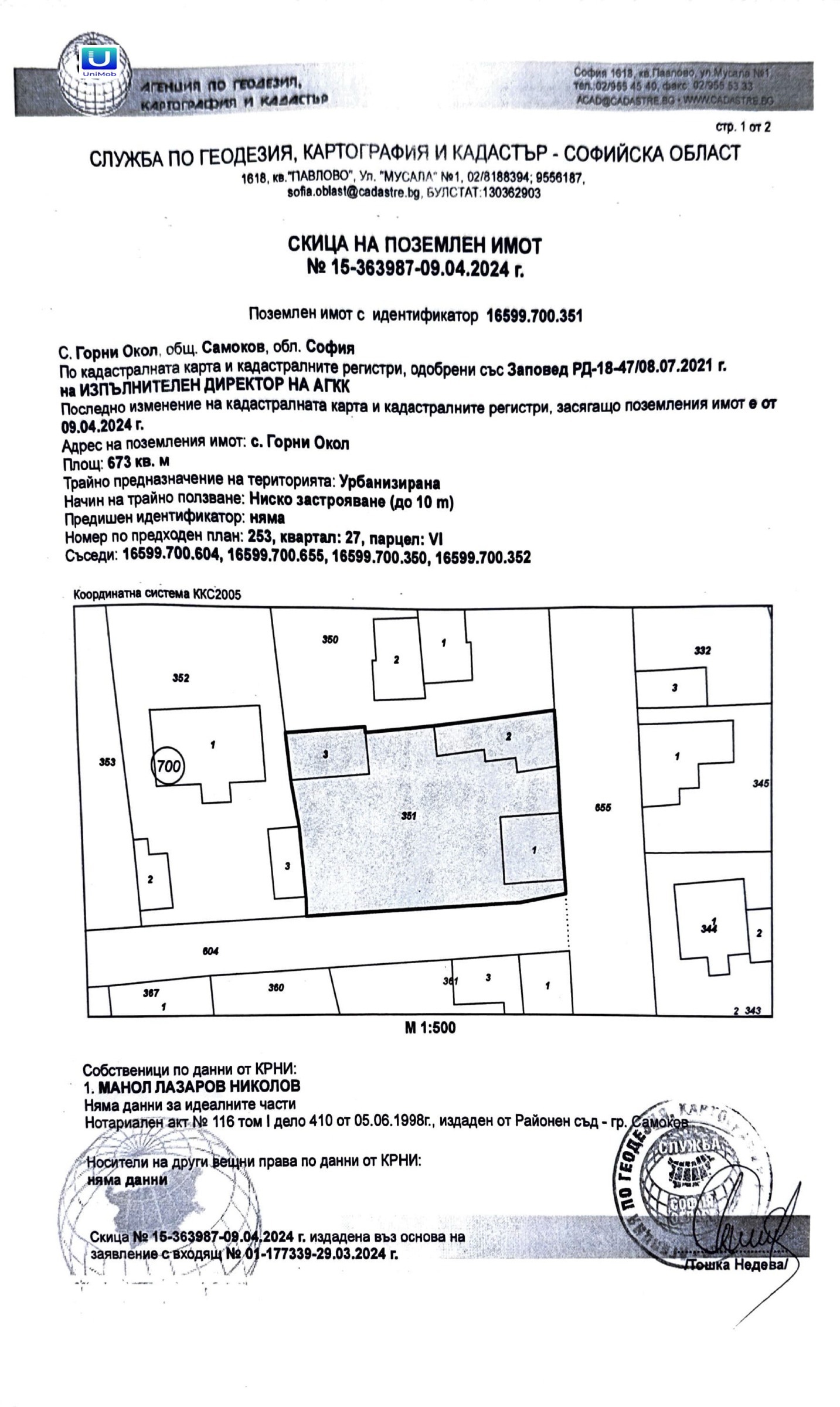Имотът е с площ от 673 кв.м и е ограден с плътна ограда. Към него води асфалтов път, а разположението му до центъра на селото съчетава удобство и комфорт с привилегията да сте част от уникалния планински пейзаж. На територията му са изградени три постройки: