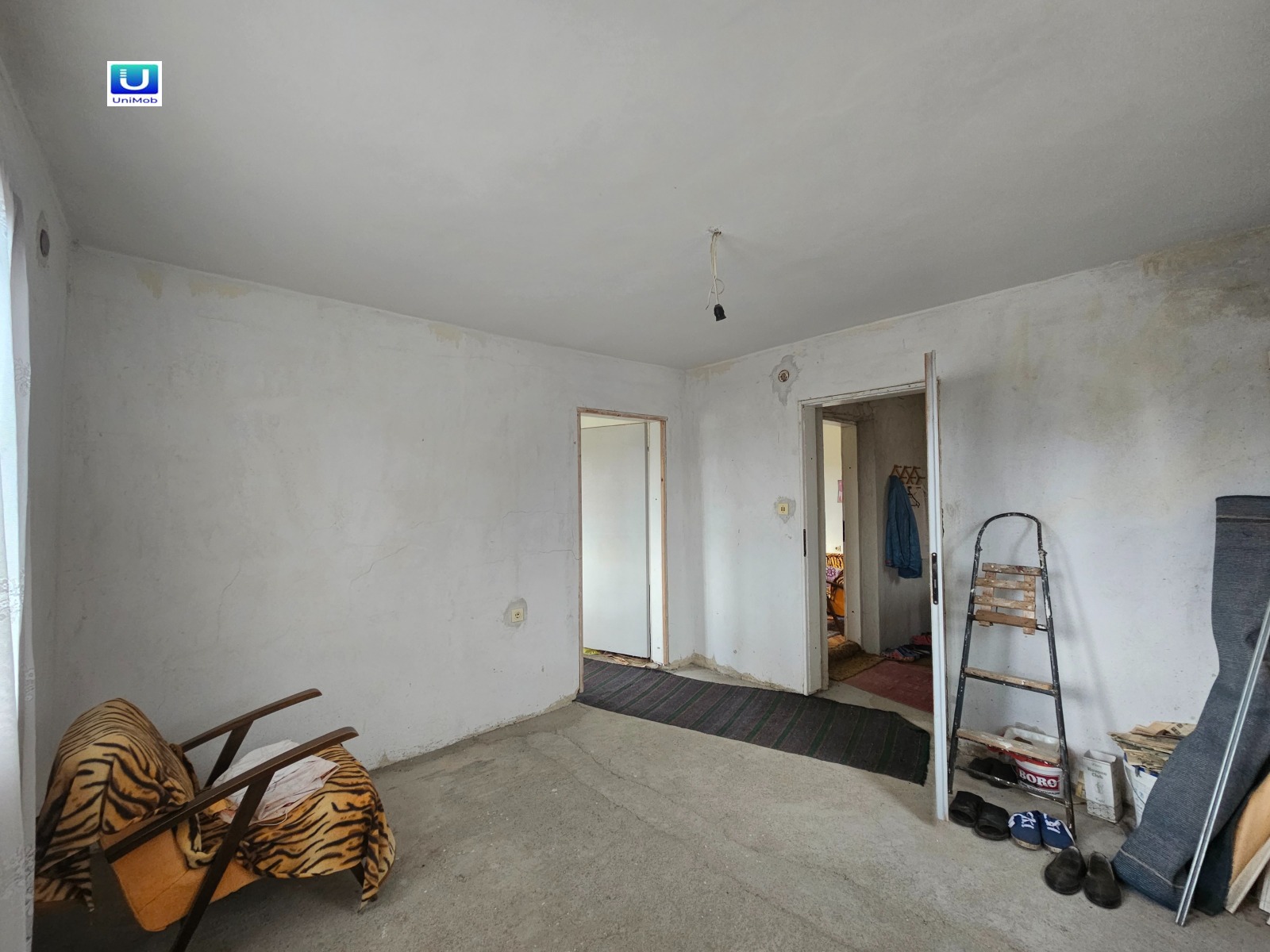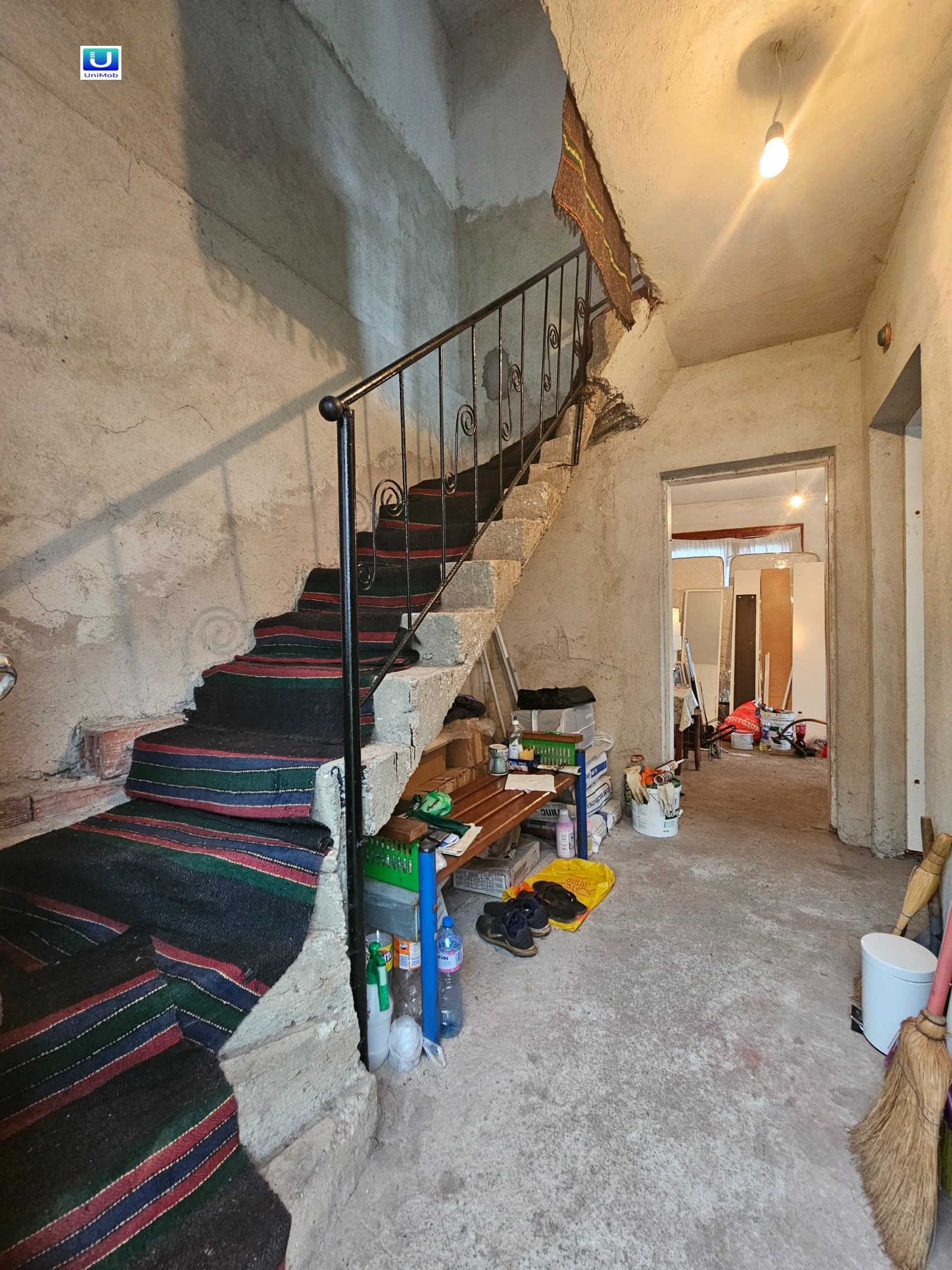 Основната къща е необзаведена и очаква своя нов собственик, който ще може да я завърши и подреди според собствения си вкус и стил. Покривът, изпълнен с двускатна конструкция и керемиди в добро състояние.
