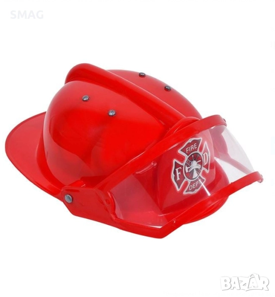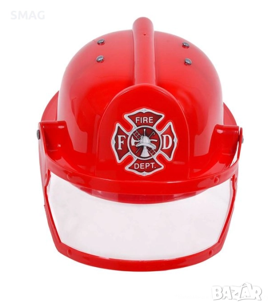 Детска пожарникарска каска, изработена от лека пластмаса, с реалистичен дизайн и предпазен протектор. Подходяща за ролеви игри, които насърчават въображението и развиват чувството за отговорност и екипна работа у децата.
