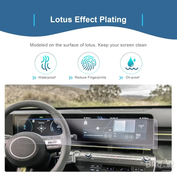 Този продукт е висококачествен защитен екран, специално проектиран за комбинирания дисплей (навигация + цифров дисплей) на моделите Hyundai Kona от 2024 и 2025 година. Той гарантира, че вашият вграден екран ще остане защитен от ежедневни дразнители като драскоти, пръстни отпечатъци и удари.