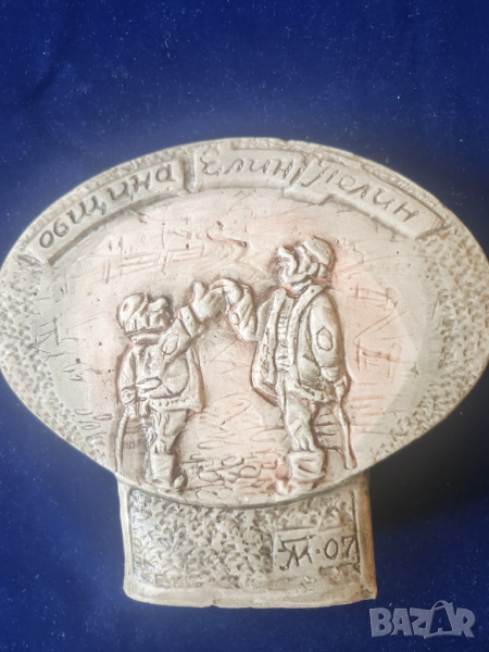 От другата страна 2 шопски образа и надпис: Община Елин Пелин