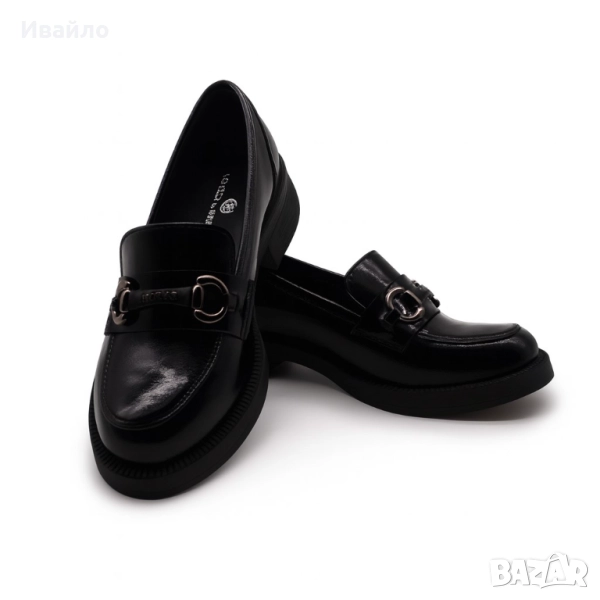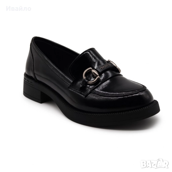 Дамски мокасини от естествен лак с декоративна тока → Обява 52096515