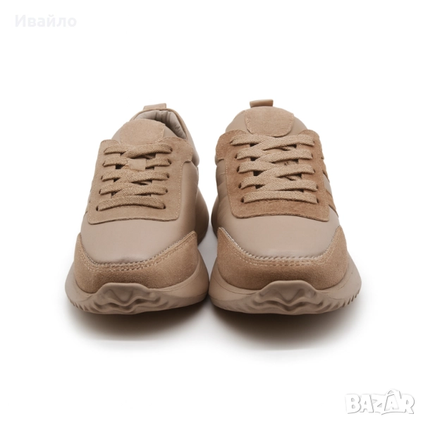 Дамски бежови спортни обувки от естествена кожа и велур → Обява 52097126