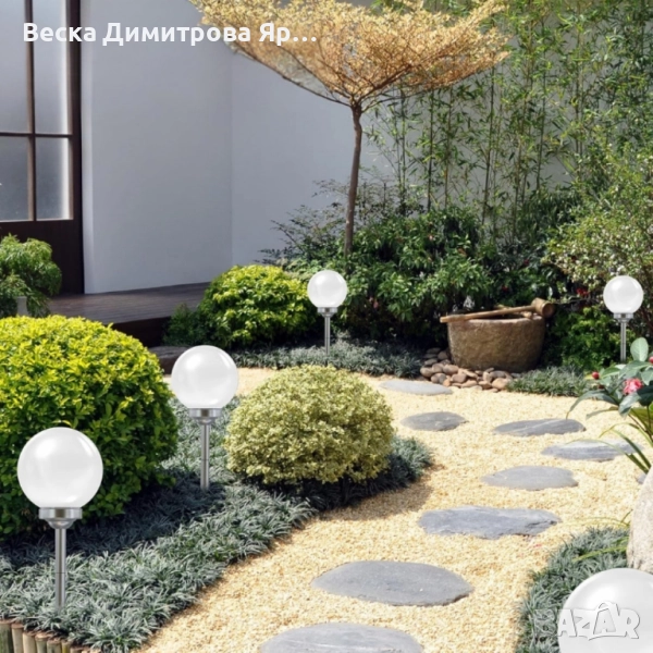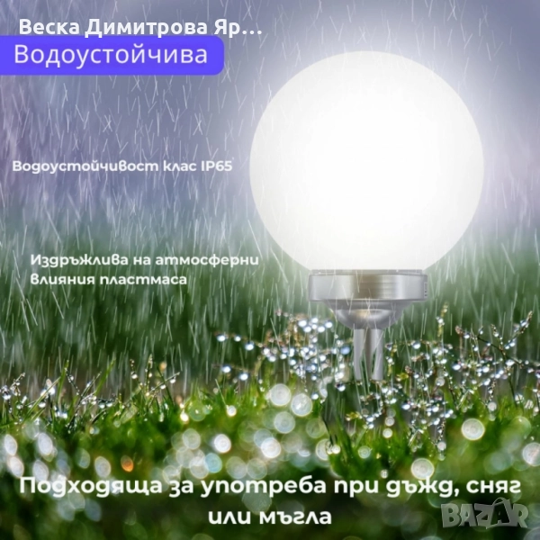 Тип: LED соларна градинска лампа на колче (сфера);