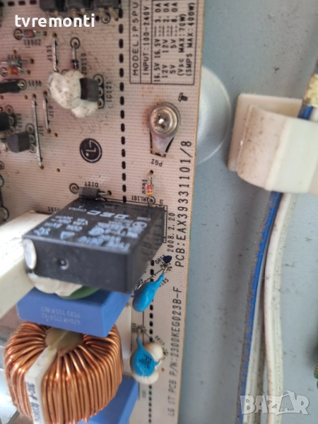 POWER SUPPLY EAY39333001 EAX39331101/8 за 42-инчов телевизор LG Модел 42PG3000 ,с дисплей PDP42G10235 Платката е използвана, но гарантирано работеща, демонтирана от телевизор със счупен дисплей. Тествана е от нашия техник.