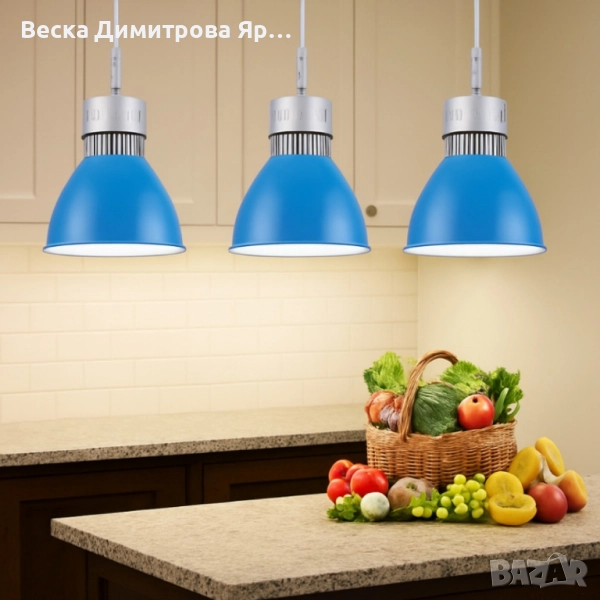 8бр/ LED висяща лампа DL219B – 30W топла светлина за плотове, острови и витрини (Ø250×H280 мм, синя)