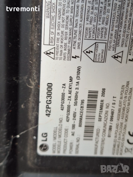 Z BOARD EAX50218102 за 42-инчов телевизор LG Модел 42PG3000 , с дисплей PDP42G10235 → Обява 52097401