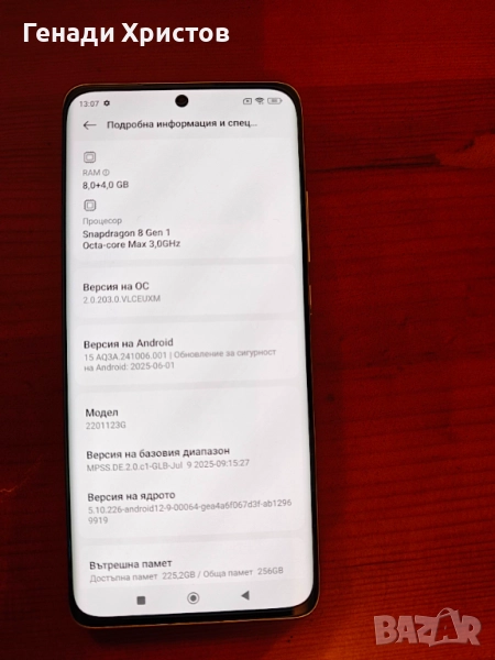 Процесор: Осем-ядрен (1x3.00 GHz Cortex-X2 & 3x2.50 GHz Cortex-A710 & 4x1.80 GHz Cortex-A510)
