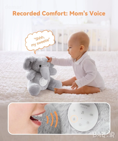 Dreamegg машина за бял шум за бебе - Snuggle Elephant със запис на глас, 21 успокояващи звука