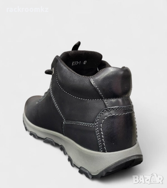 Мъжки боти K373-1 Black, изработени от висококачествена естествена кожа. Моделът предлага изключителен комфорт, устойчивост и стабилност благодарение на здравата подметка с добро сцепление. Идеален избор за ежедневието и по-студените дни. Вътрешната част е мека и топла, което осигурява удобство при продължително носене.
