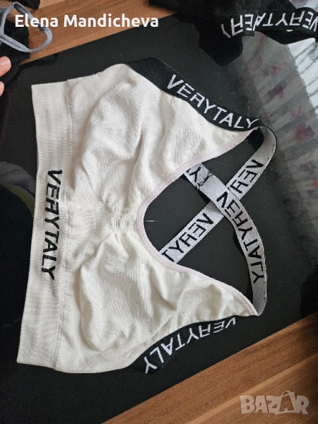 3. 3бр. Бял, сив и черен топ с ластици с надпис, размер M/L - 7лв. /бр.