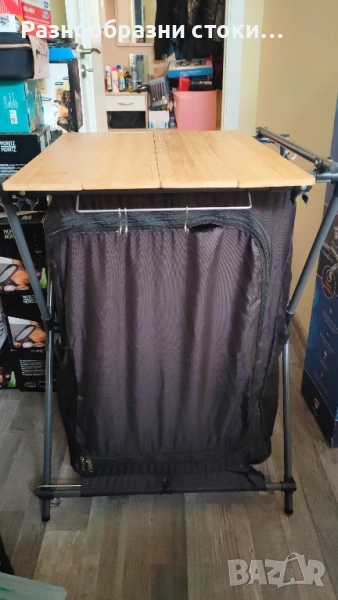 Къмпинг шкаф с маса, който е сгъваем и лесен за пренасяне