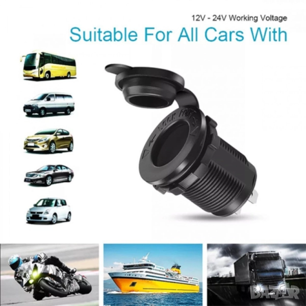 Женско гнездо за вграждане за авто запалка 20A, 12V/24V, прахоустойчиво, с капак
