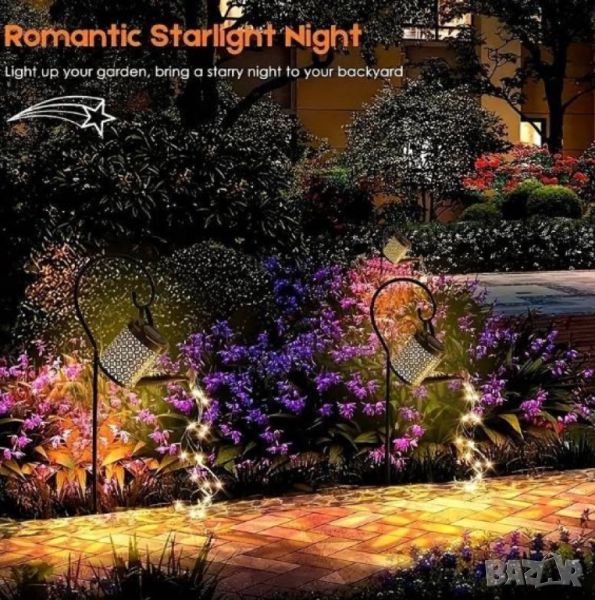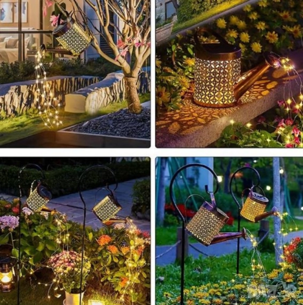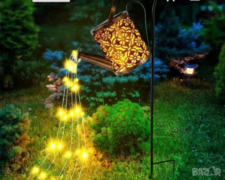 Декоративна соларна лампа със светлинни спринклери – ефект „водопад“, 60 LED, топла бяла светлина