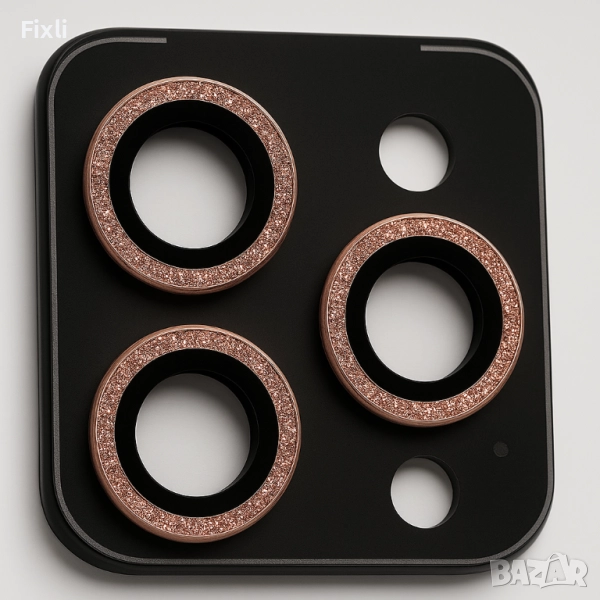 Протектор за камера с брокат за iPhone 17 Pro / Pro Max – нов, неразпечатан комплект.