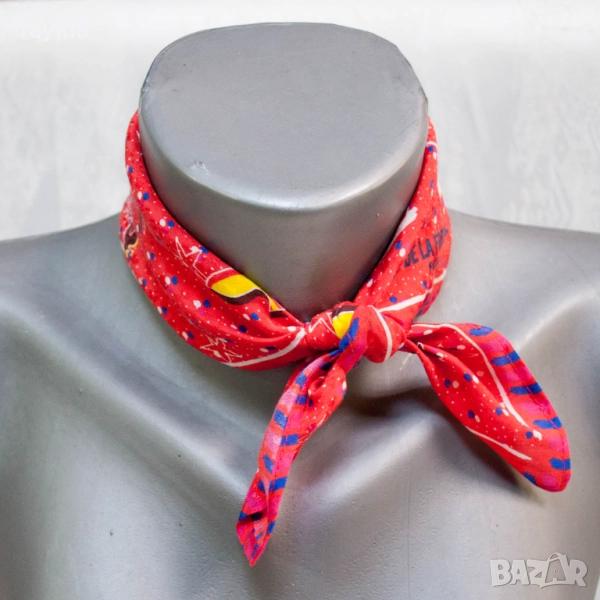 Изработен от висококачествена жакардова коприна този квадратен шал е с размери 41x41 см и е с логото на марката.Този универсален шал е идеален за носене по различни начини през летния, есенния и пролетния сезон.