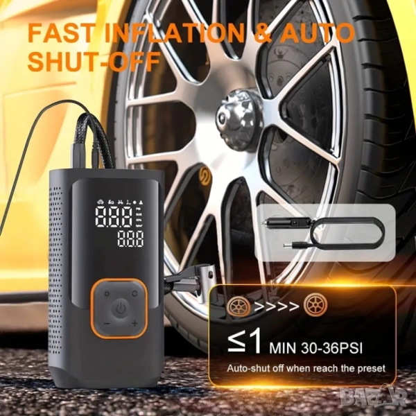 Компресор за гуми, захранване от гнездото за запалка - компактен, мощен, интелигентен → Обява 52099083