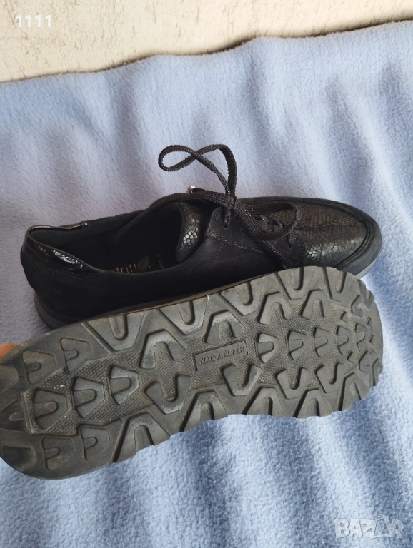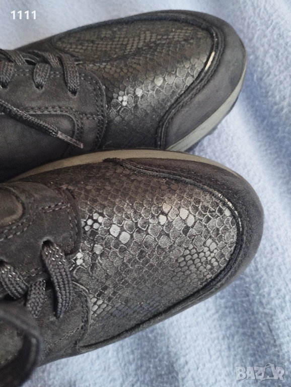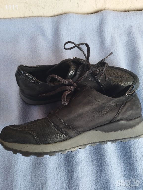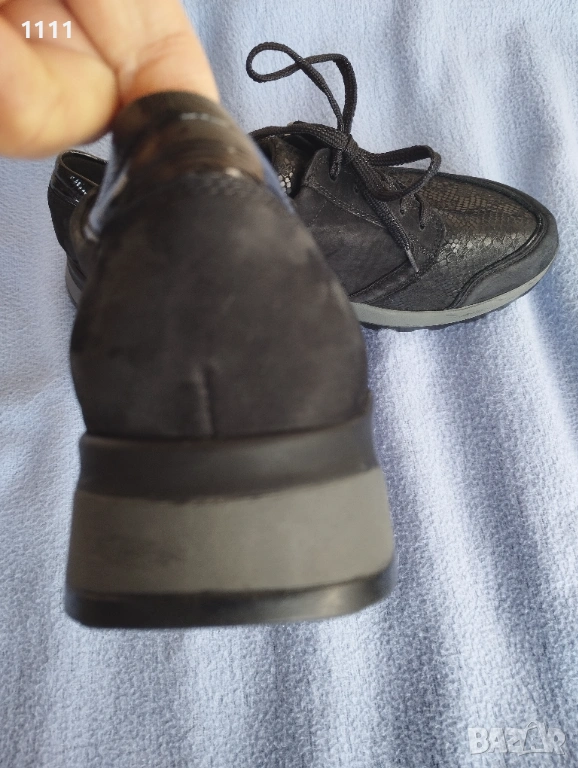 Черните са по-висок клас.Естествена кожа и полиуретан, който е в горната част на обувката и е разтеглив.За "проблемни кокалчета".Черен и сив цвят.Много леки,стилни и удобни.Номер 42 и 1/2 с дължина на стелката 28,2см.Цена 85лв.В отлично състояние са.
