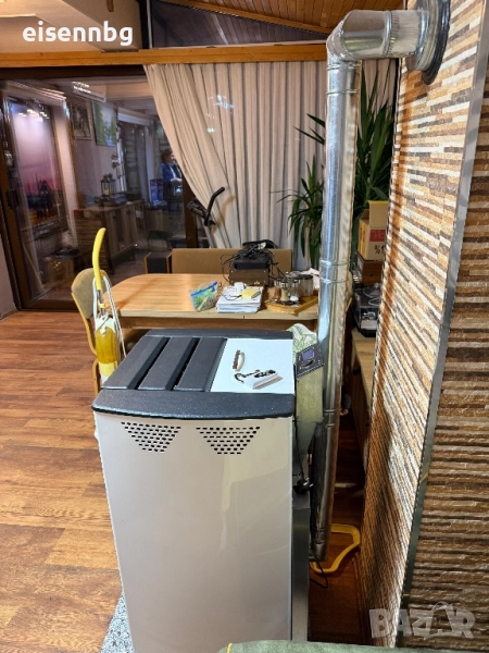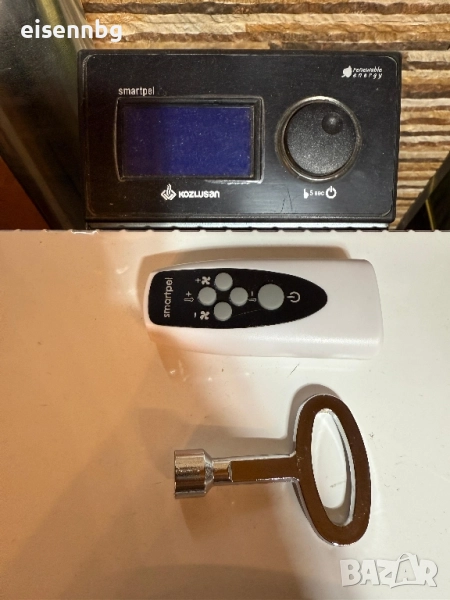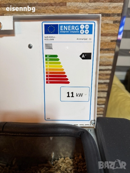 SMARTPEL Air / Steel – Въздушна камина 3-11 kW с Камината е със стоманени панели и чугунени отливки на изхода на топлия въздух – Топлоустойчиво керамично стъкло, което издържа на температурен шок – Цветове: бял През 2013 година фирма KOZLUSAN пуснаха на пазара продуктът – камина на пелети с въздушна риза SMARTPEL Air с мощност от 3 до 11 kW. През 2023 добавиха и модел изпълнен изцяло със стоманени панели, вместо чугунени плочи – моделът Smartpel Air Steel Фабрично камината на пелети SMARTPEL Air се произвежда електронно табло за управление с МЕНЮ НА БЪЛГАРСКИ ЕЗИК, със седмичен програматор, дистанционно управление, автоматично запалване, кутия за пепел. Спецификация и Диаграма Модел : Smartpel Air Мощност : 3-11 kW/h Консумация на пелети : 0.67-2.46 kg/h Автономия на горене min/max(h) 6-30.0 Електрическа консумация : 50-100 W Димоотвод : ф80 Вместимост на резервоар за пелети : 20 kg Тегло:120кг. Размери (ВхШхД) 1020x600x540 mm Smartpel Air 3-11 kW/h 88% Миналата зима е взехме от Одрин ,но не можахме да я ползване ,тъй комина в блока ни не е достатъчен Пробвали сме около 3-4 пъти Още е в гаранция Ще дам прилежащите и документи Комплекта съдържа :Мраморна подложка ,