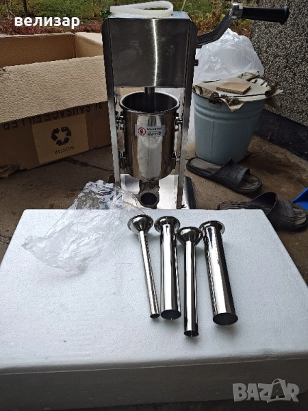 Продавам професионална пълначка за пълнене на суджук и луканка 3 литра от инокс с 4 приставки.Машината е с редуктор.Договаряне