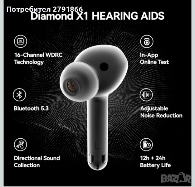 Слухови апарати Diamond X1 OTC с Bluetooth презареждащи подходящи за лека до умерена загуба на слуха