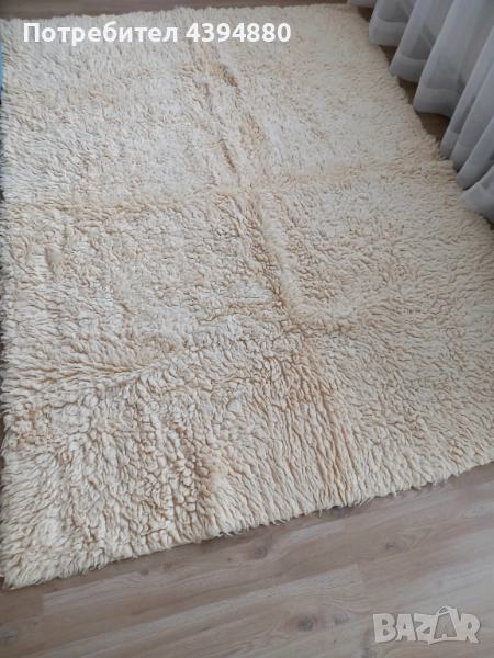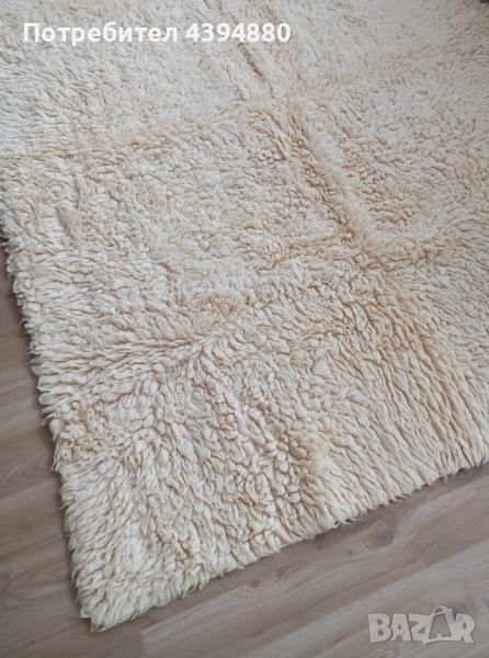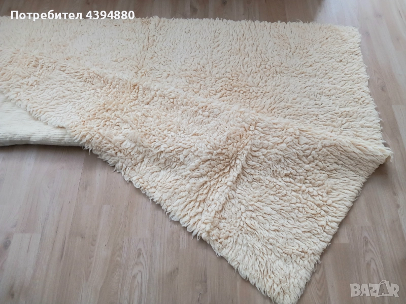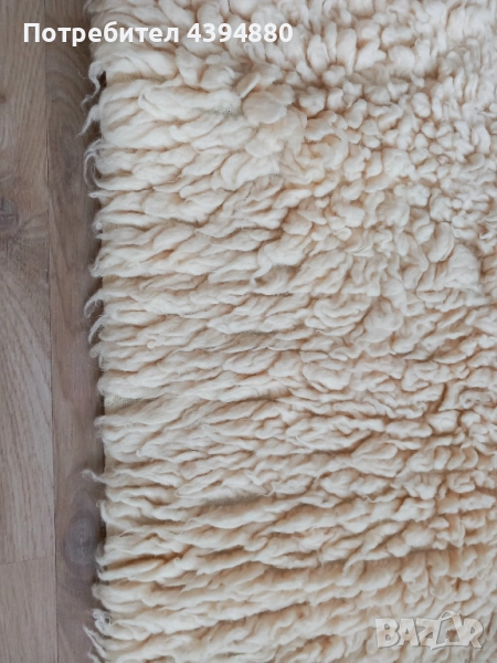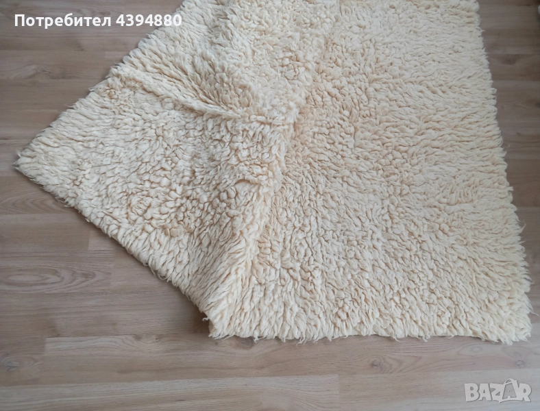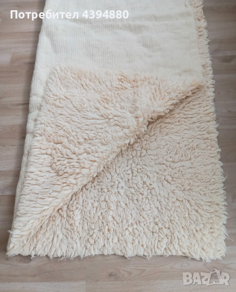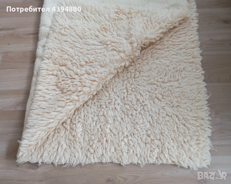 Нов вълнен китеник в бял цвят шампанско. Изработен от качествена и топла материя от естествена вълна.Размери 155/×200см.Подходящ за покривка за легло или стилен килим