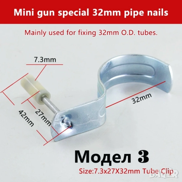 Модел 3 Пирони за захващане на тръби с диаметър до 32 мм. 100 бр. за 11.50 евро.