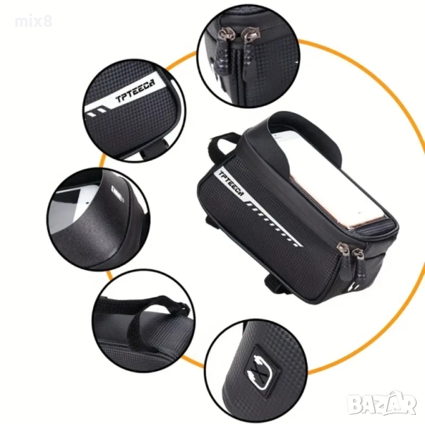 Чантата се монтира на рамката на велосипеда с велкро ленти.