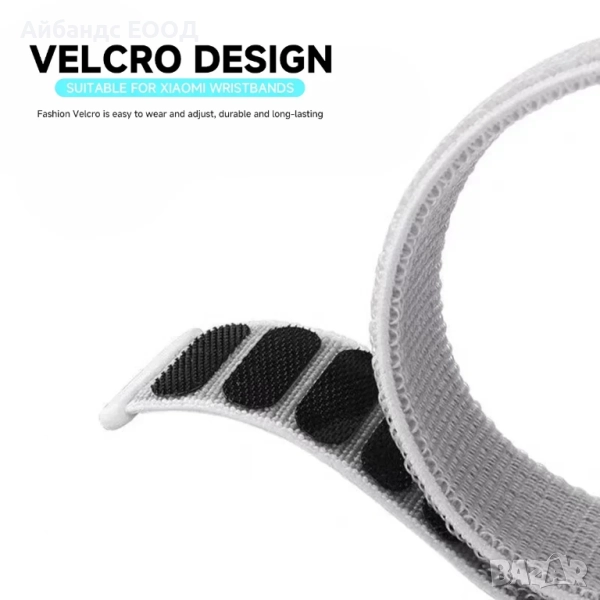xiaomi mi band каишка, mi band 8 плетена каишка, mi band 9 текстилна каишка, xiaomi band 10 strap, каишка с велкро, woven nylon strap xiaomi, mi band текстилна каишка, смарт бенд гривна, плетена mi band каишка