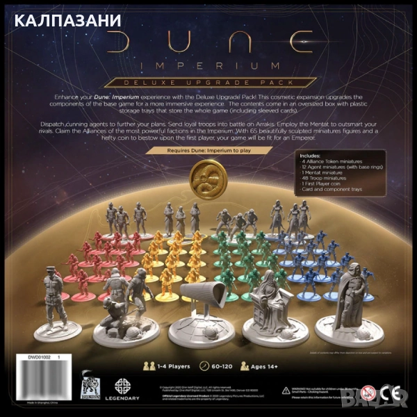 Обогатете Dune: Империум с това великолепно козметично разширение. Кутията на разширението е специално пригодена да съхранява цялата игра, включително и облечени в протектори карти.