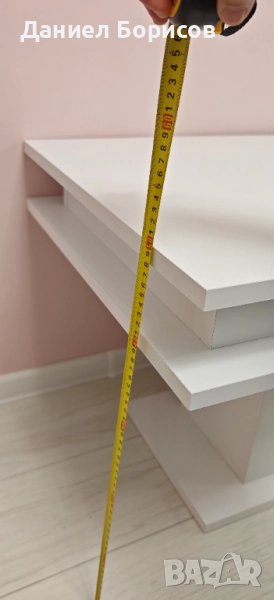 холна маса в бял цвят, идеална за модерен интериор. Масата е в отлично състояние, с минимални следи от употреба. Тя се отличава с уникален двупластов дизайн и интегрирано LED осветление, което създава уютна и модерна атмосфера в хола. Масата е изключително стабилна, с масивна основа на пиедестал.