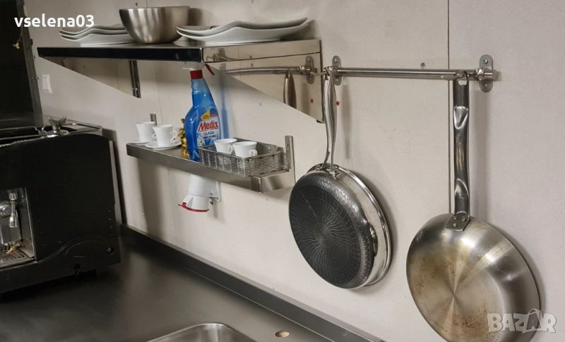 Чисто нова закачалка за закачане на тигани за професионална кухня. цена - 45лв. Стойка кошница за стенен монтаж цена -35лв.