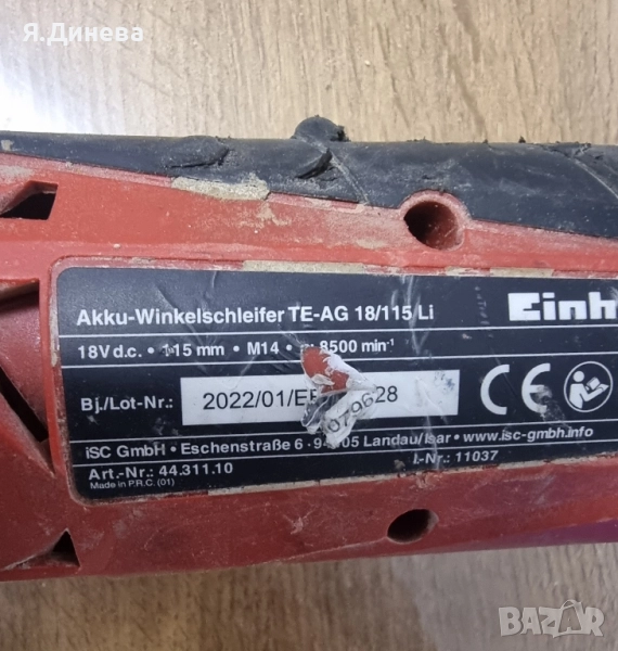 Акумулаторен ъглошлайф Einhell 18v за части → Обява 52101606